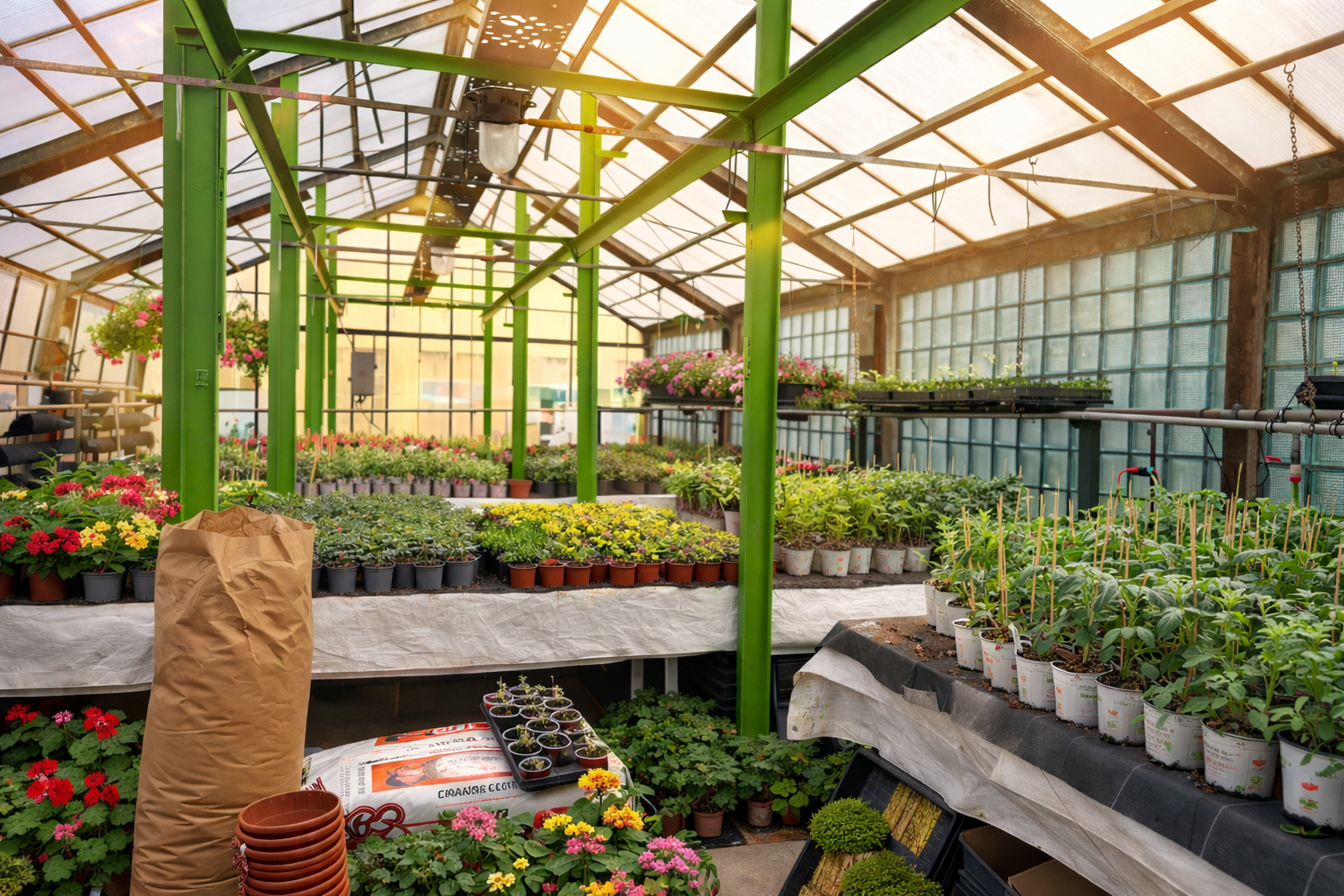 Vlastní sazenice, květiny i zelenina z vlastních skleníků.